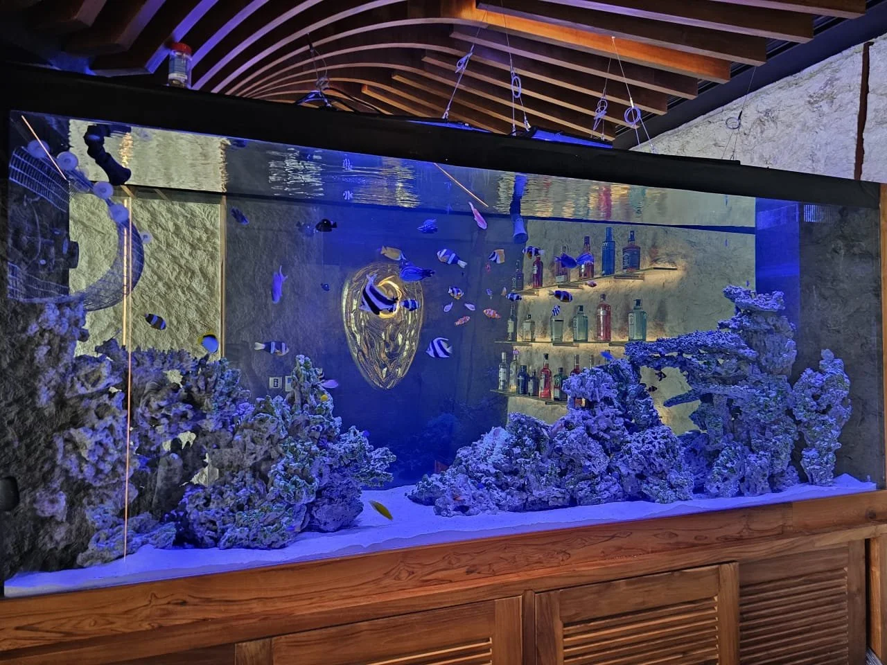 We have Designed and Maintained this 3000L Aquarium that represent a oceanic "window" to the villa karaoke Room. a serene spectacle well suited for the paradise Island